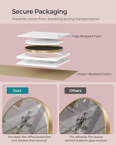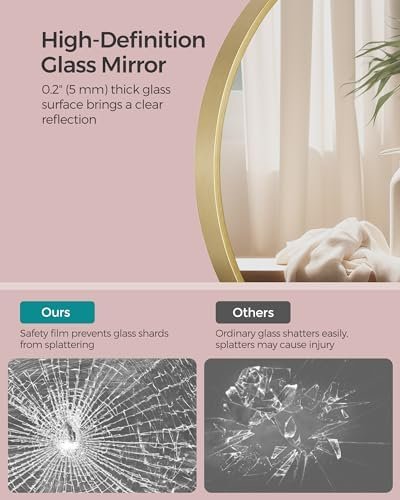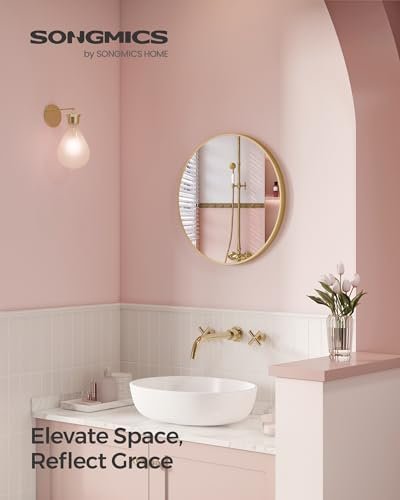 The SONGMICS 24-inch round wall mirror features a rust-resistant metal frame and distortion-free glass, making it ideal for bathrooms, bedrooms, and entryways. Its modern design and included mounting hardware ensure quick, stylish installation. See how this sleek accent mirror can refresh your space—click to learn more.
